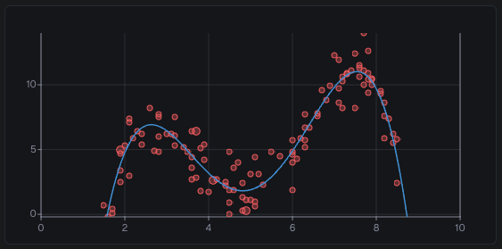 | Polynomial | A curve up to the 10th degree. The degree (n in the formula) can be either a static number or a property value. | y = axⁿ + bxⁿ⁻¹ + … + d | |