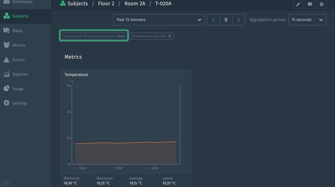 20. Below is a screenshot of a subject where the value of "has Outdoor Temperature Sensor" is false, and thus you are able to see that the conditional content is hidden.