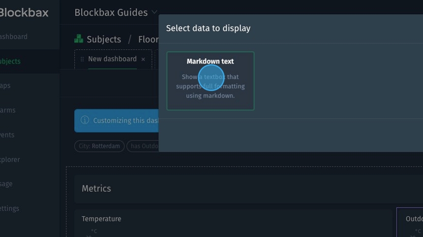 Let’s discover how to use a powerful widget in the Blockbax platform, namely the text widget. Alongside our Title widget, this text widget has significantly more customization options. Customization options include but are not limited to defining links, creating tables, inserting images and much more. Make sure you take a look at the documentation, as that’s where you can find all of the various methods of displaying information.